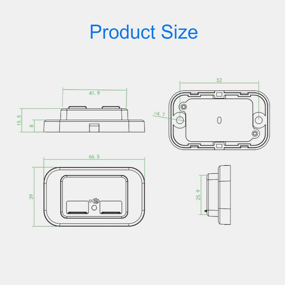4.Simply installation It's surface mount installation. The device can be installed on a flat surface, with no need to cut a large hole, just a small hole to put the wire in, easy to be installed within 20 minutes. Universally suitable for most 12V/24V Vehicles, Cars, Motorcycles, Boats, RV. Input: 12V-24V, Output: 5V 4.8A, the blue light is always on when power is on.