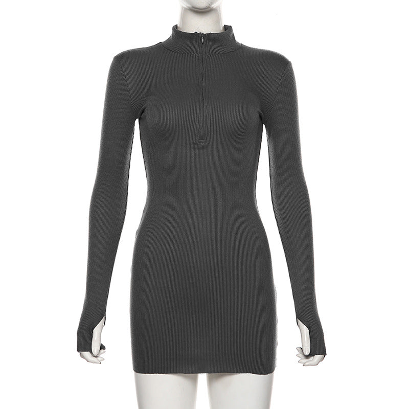 Europe and the United States 2019 Amazon autumn and winter fashion women's new long-sleeved zipper round neck bag hip slim fit all-match dress