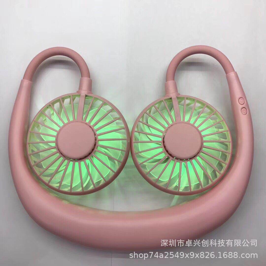 Hanging neck fan mini usb outdoor sports aromatherapy fan luminous colorful night light portable lazy hand folding